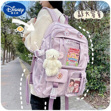 迪士尼(Disney)儿童书包女韩版学院风高中初中学生火背包森系网红少女心双肩包 萌萌紫加固版(面料加厚 防水防盗) 书包+(2张卡片)