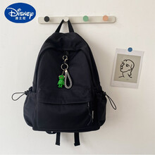 迪士尼(Disney)儿童书包女学生韩版初中森系百搭高中高颜值双肩包大学背包女耐用 黑色【普通布料】 书包+爱心蛙挂件【收藏下单送徽章】