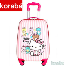 koraba 儿童拉杆箱万向轮小学生男女卡通蛋壳书包18吋1-3年级3-5-8岁行李箱旅行箱登机箱 条纹猫 18寸方形