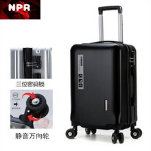 【支持奥.运中国队】NPR 铝框男女行李箱学生旅行箱拉杆箱包登机密码皮箱子L 豪华拉链款(典雅黑) 20寸