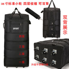 航空托运包出国留学旅行包大容量伸缩行李箱万向轮折叠行李包 38寸升级不锈钢轮黑色 送打包带
