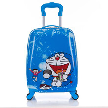 彬尚儿童拉杆箱男女童小孩学生卡通蛋壳书包18英寸1-3年级3-5-8岁行李箱女旅行箱登机箱拉杆皮箱 蓝色图案款 18寸方形