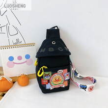 儿童背包户外出游可爱卡通帆布小包儿童胸包轻便百搭户外出游包时尚女童背包斜挎包洛晟 款式三黑色