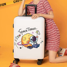 卡通拉杆箱男女学生行李箱26英吋大容量ins网红日系少女旅行箱24吋结实耐用密码箱28吋皮箱子 太空宇航员【奶白色】 24吋【店长推荐 贴纸+防尘套】