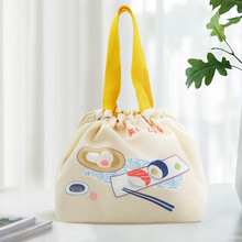 日式帆布饭盒袋便当包小学生上班族男女士手提便当袋子可爱抽绳束口袋多功能大容量儿童送饭包收纳袋 米色(黄色手提)