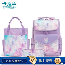 卡拉羊小学生书包1-3-4年级男童二三四五年级儿童女孩轻便耐磨减压双肩包抑菌减负一体式可打开背包 丁香紫紫夜(三件套)