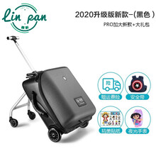 行李箱小学生懒人行李箱儿童拉杆箱可坐可登机溜遛娃宝宝骑行旅行箱20英寸 升级版新款PRO版黑色 送+坐垫