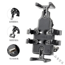 小米生态同款摩托车手机导航支架骑行防震铝合金手机支架电动车防震防抖固定架 8爪-充电款-手机支架-车把安装+后视镜支架