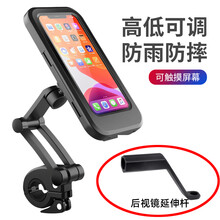 电动车手机支架外卖电瓶踏板摩托车用固定导航支架防震防水可充电 后视镜款-黑色【触控灵敏 防雨防摔 360°可调节