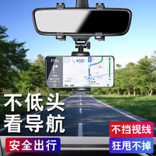 车载手机支架汽车后视镜导航支撑架车上通用卡扣式记录仪固定夹子高德ar导航支架360度旋转通用固定架 黑色【后视镜手机架】