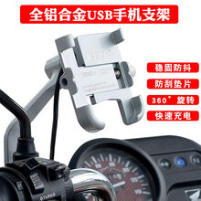 炫咔仕适用于摩托车手机导航支架带充电器qc3.0快充USB 铝合金防震外卖12v通用 快充 12v-24v 后视镜款 银色