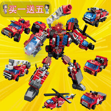 小乐高机器人小盒装小积木变形合体金刚小礼物拼装玩具小颗粒启蒙益智拼图组装儿童6岁7岁8岁9岁男孩生日 6合1消防炽烈战神1416【496片】