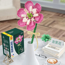 森宝积木花拼装玫瑰花束鲜花盆景装饰插花朵DIY积木女孩礼物 含笑花-红色