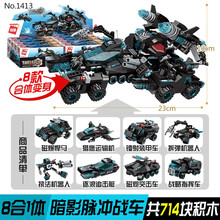 启蒙积木兼容小颗粒男孩变形机器人金刚益智拼装车飞机警察军事拼插玩具消防特警组装拼图礼物6-12岁 8合1暗影脉冲战车【714片】