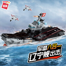 启蒙积木 儿童玩具巡洋战舰超集变机器人歼20导弹立体拼装模型 男女孩生日礼物 辽宁号航母-1418