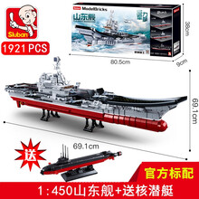 快乐小鲁班高难度成人兼容小颗粒战舰男孩辽宁号航空母舰军事拼装积木山东舰儿童益智拼插玩具拼图6-14岁 1:450山东舰+核潜艇1921片