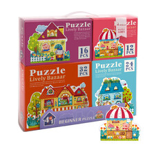 弥鹿(MiDeer)儿童拼图3-6岁纸质玩具四合一主题拼图礼盒套装 童话小镇儿童礼物