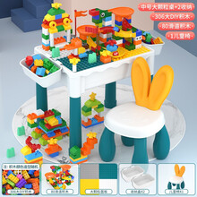 儿童积木桌子大颗粒多功能早教益智拼插玩具0-3-6岁男女孩拼装游戏桌椅宝宝学习桌六一儿童节礼物 中号积木桌套餐C