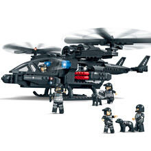 沃马兼容小颗粒男孩特警战队人仔指挥车拼图警察运输机军事拼装积木儿童益智拼插玩具6-10岁 猎鹰号武装直升机542片送1盒2灯