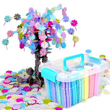 艾福儿 加厚雪花片积木玩具收纳盒装塑料积木拼插拼装宝宝儿童早教玩具男孩礼物3-6岁 【加厚中号】马卡龙色600片收纳盒装