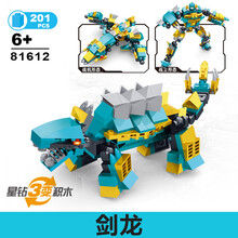 星钻积木兼容乐高拼装恐龙积变战士变形机器人拼插积木儿童益智玩具男孩生日礼物 81612剑龙210片