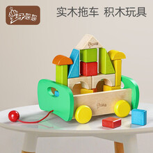 王子妈妈 宝宝积木实木榉木质可啃咬 婴幼儿童幼儿园教具益智拼装构建木制玩具0-1-3岁 拖车17粒装