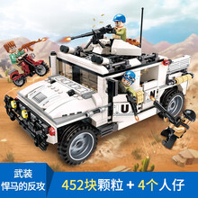 启蒙积木玩具拼装兼容小颗粒雷霆使命军事塑料拼插坦克飞机拼图绝地求生吃鸡组装模型男孩6-8-10岁 武装悍马的反攻【452片 4人仔】