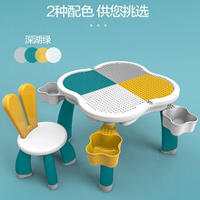 新款万高新款积木桌学习儿童多功能玩具lega拼图幼儿园兼容兼容乐高积木桌 【8703深湖绿】大颗粒面板桌子+一椅