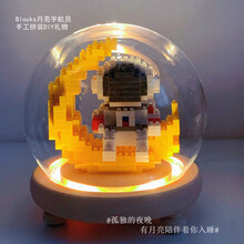 兼容乐玩高益拼装小颗粒微型玩具积木男孩成年生日礼物立体拼图航天太空微型宇航员摆件系列 贩卖月光+发光玻璃罩 340颗粒