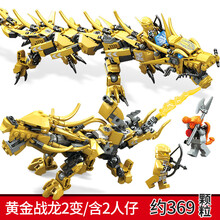 乐高幻影忍者积木拼装玩具男孩恐龙机甲神龙飞龙小颗粒6-12岁 2变黄金战龙含2人仔 >约369颗粒