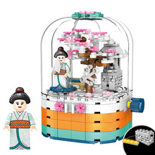 森宝积木 儿童积木玩具旋转礼盒武大樱花街景系列日式场景模型拼装玩具 樱花-旋转盒【259颗粒配1人仔+灯光】