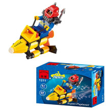 儿童拼装积木玩具幼儿园礼物小拼装小积木组装男孩女孩拼插城市警察军事积木玩具六一节礼物 黄色潜水机