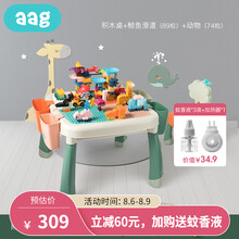 aag积木桌 多功能拼装玩具益智大颗粒积木桌子男孩宝宝儿童玩具桌 积木桌+椅+可爱动物+鲸鱼滑道