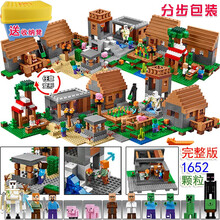 儿童玩具兼容乐高我的世界新品村庄完整房子带灯光村庄山洞矿井树屋小颗粒拼装