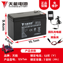天能12V7AH电瓶儿童电动童车四轮越野玩具车电池12伏7安电池6-FM-7/20HR 天能12V7ah-重约2.14kg送充电器套装