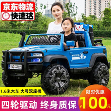 颜桔儿童电动车四轮越野车四驱玩具遥控汽车可坐大人宝宝带摇摆双人童车 顶配-全功能+加大电池+蓝色加大车身,四驱设计,升级加大电瓶续航更久,更耐用!