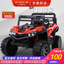 孩娃乐 超大号儿童电动车四轮可坐大人遥控汽车双人越野小孩玩具车摇摆四驱童车 豪华软轮红:全功能+发泡软轮【下单立减】【双人童车】【超大电瓶,超长续航】【四轮强力驱动】