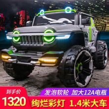 乾越【绚烂彩灯】超大双人座儿童电动车四轮越野遥控玩具汽车可坐人男女小孩宝宝四驱摇摆电瓶车 浅灰色顶配:全功能+12v12A电瓶+皮座+发泡轮炫酷灯光、四驱大车、可遥控、可坐两个孩子