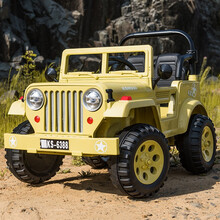 颜桔儿童电动车四轮越野遥控玩具汽车可坐人男女小孩宝宝四驱摇摆车电瓶车 旗舰版【黄色】大人站立托盘+四驱+锂电瓶+全功能带大人站立托盘,加大载重、亲子童车、四轮驱动、皮软座椅、早教音乐、可遥控可自驾