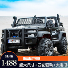 仰科 儿童电动车四轮玩具车可坐人宝宝小孩遥控汽车双人超大越野车可坐大人 黑色顶配全功能:四驱+皮座+12V10AH大电瓶【收货满意晒图好评,享30元好礼】