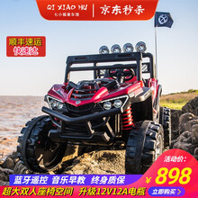 孩娃乐 超大号儿童电动车四轮可坐大人遥控汽车双人越野小孩玩具车摇摆四驱童车 顶配四驱大电红:全功能+12V特大电瓶+皮座
