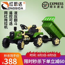 红思达儿童电动车网红拖拉机玩具车可坐人四轮遥控车小孩玩具汽车儿童电动汽车2-10岁双人车超大号 军绿色(大电瓶+早教+液压翻斗 无遥控)