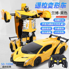 儿童变形遥控汽车四驱赛车充电动金刚3机器人5岁4感应6男孩玩具车男孩生日礼物 黄色兰博大号升级版 【遥控变形+灯光声效】