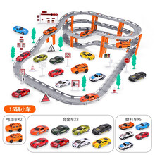 亲子部落 儿童玩具电动轨道车跑道赛车合金汽车益智赛道男孩3-6岁 赛车款【2电动车+8合金车+5塑料车】