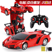 遥控车儿童男孩车模一键变形车玩具汽车人金刚电动无线耐摔跑车赛车六一儿童节生日礼物 兰博红金刚【充电套装】