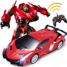 遥控车儿童男孩汽车玩具一键变形车机器汽车人电动无线遥控耐摔跑车赛车玩具生日礼物 红色金刚【充电版】