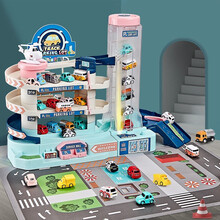 宝乐星 儿童玩具男孩汽车大冒险闯关轨道车停车场自动升降电梯城市停车大楼生日礼物配8车+地图