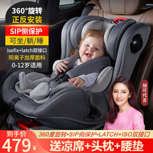 Gaberen儿童安全座椅汽车用0-4-12岁婴儿宝宝车载座椅ISOFIX硬接口360度旋转可坐可躺 尊享款灰【SIP侧保护+360度旋转+ISO接口】【SIP侧保护】【360°旋转】【正反向安装】【LATCH+ISOFIX双接口】【165°坐躺睡调节】【0-12岁适用】【抗氧化剂】【婴儿专用头枕+腰垫】点击