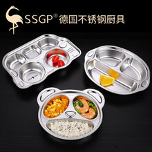 德国SSGP三四钢 儿童餐盘304不锈钢幼儿园饭盒餐具宝宝托盘卡通分格餐盘可爱餐盒 五格 汽车(27cm*18.5cm*3cm)