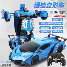 儿童变形遥控汽车四驱赛车充电动金刚3机器人5岁4感应6男孩玩具车男孩生日礼物 蓝色兰博大号升级版 【遥控变形+手势感应+灯光声效】